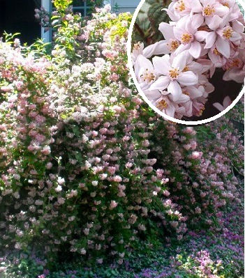 Один із найкрасивіших сортів із злегка пониклими пагонами. Квіти великі (2,5-3 см), ніжно рожевого кольору (при відцвітанні стають майже білими), широко відкриті із великими, жовтими тичинками. Надає перевагу вологим та родючим грунтам. З успіхом використовується в групових і одиночних посадках.