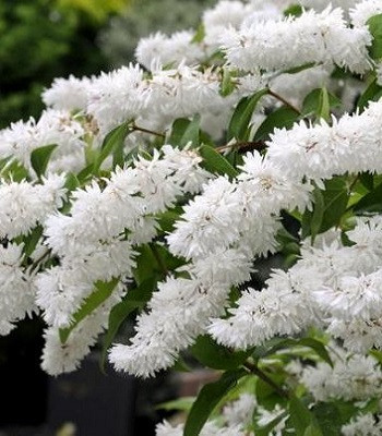 Відрізняється виразною опушкою листя, за рахунок чого і отримав свою назву. Це один з найбільш красивоквітучих сортів з махровими квітами, зібраними у вузькі суцвіття. В цей час пагони буквально прогинаються під вагою численних суцвіть білих квітів. Росте доволі швидко близько 30 см в рік. Пагони жорсткі, прямі. Не потребує великої кількості вологи. Зростає майже на будь-якому грунті. Під час весняних заморозків може підмерзати, однак швидко відновлюється. Квітучий кущ дейції прекрасно виглядає в ландшафтному дизайні, уздовж бордюрів, в групових і одиночних посадках.