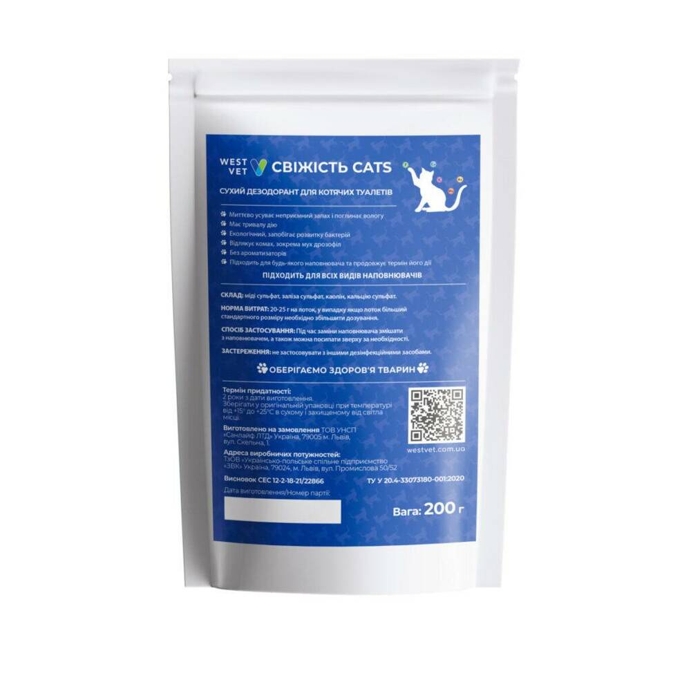 Дезодорант для котячих туалетів Свіжість Cats 200 г, WestVet