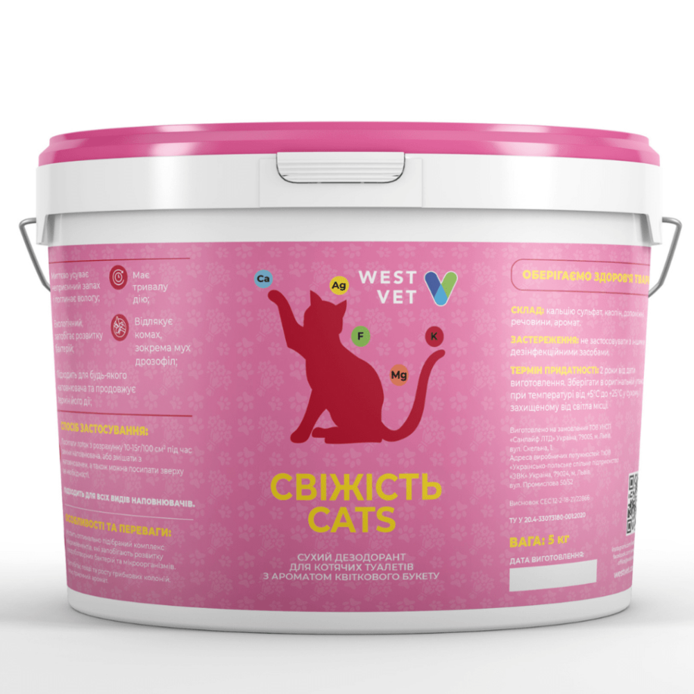 Дезодорант для котячих туалетів Свіжість Cats Квітковий букет 5 кг, WestVet