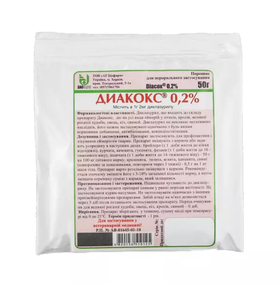 Диклазурил не кумулюється в органах i тканинах організму тварин та не викликає негативних наслідків навіть при перевищенні рекомендованих доз у 25–50 разів.
