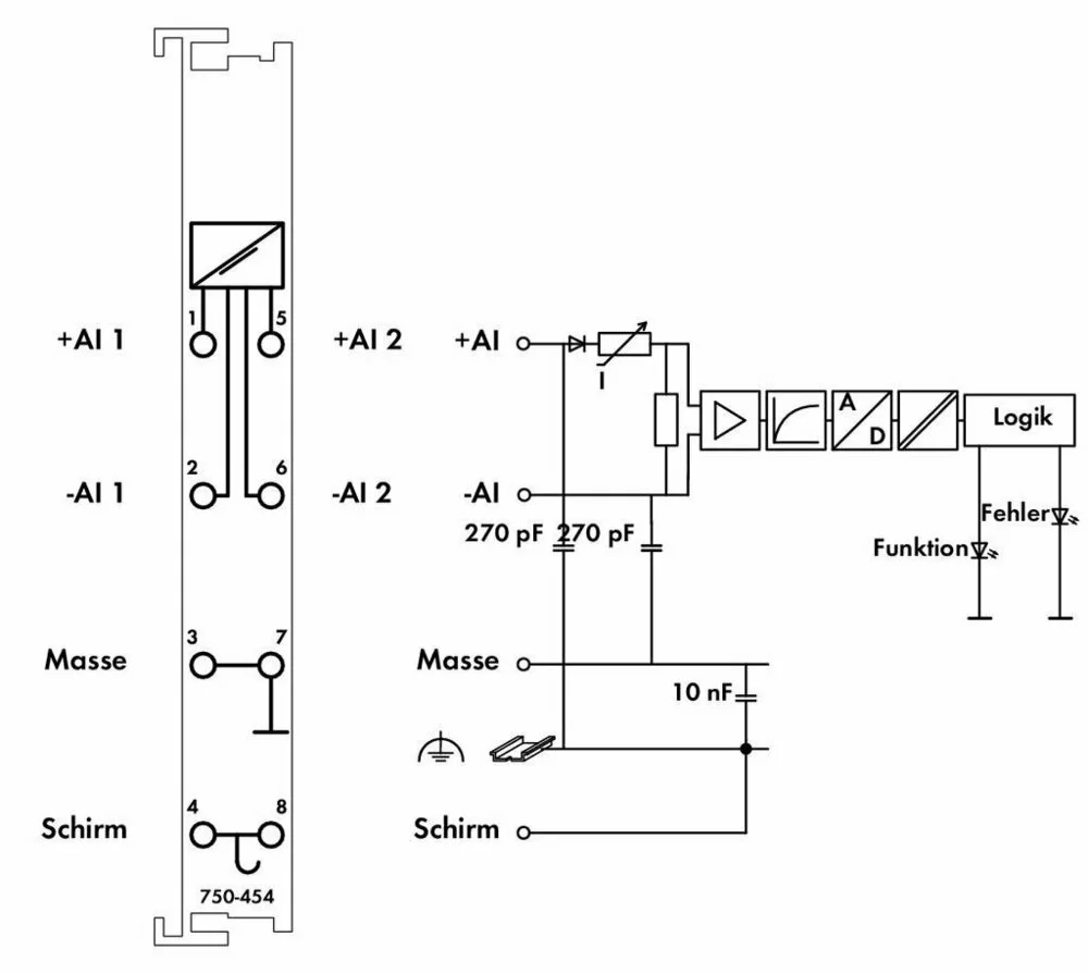 Диференціальні введення WAGO 2 аналогові введення; 4 - 20 мА.