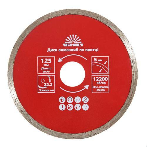 Опис алмазного диску Vitals по плитці 125х22.2х5 мм