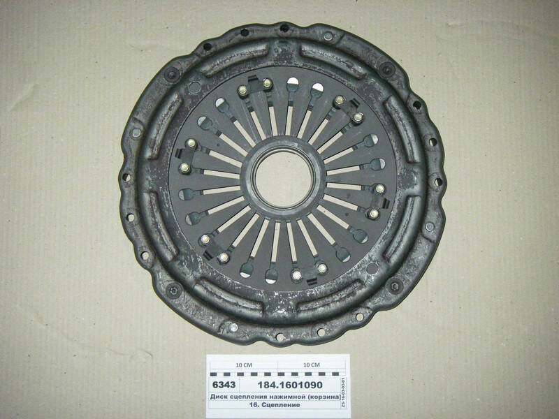Диск нажимний в зборі лепестковий, також відомий як корзина зчеплення (артикул 184.1601090), призначений для використання в зчепленні дизельного двигуна ЯМЗ-184. Цей компонент забезпечує надійну передачу крутного моменту від двигуна до трансмісії, а також відповідає за легкість і плавність перемикання передач.