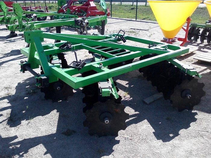 Навесная дисковая борона 4-х секционная U363/6 предназначена для предпосевной обработки плотных почв, вспаханных осенью (кроме каменистых почв), при влажности гарантирующей нормальную работу. Дисковая борона может быть применима также для разрывания и взламывания задерненых пластов после пахоты на лугах и других пастбищных угодьях а также для выполнения лущения жнивьев непосредственно после срезания растений. Дисковые бороны могут быть использованы для резания и прикрытья зеленых удобрений и навоза после разбросания. Машина может быть использована также для вымешивания высеянных минеральных удобрений и извести с почвой.
