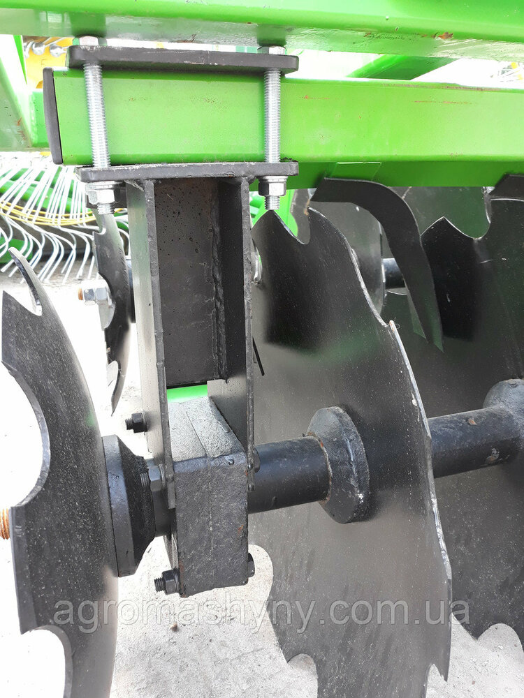 вимішування висіяних мінеральних добрив та вапна з ґрунтом. У серії борін 2-х секційних в V системі знаходяться борони з шириною за-хвату від 1.5 до 3.15 м. Кожна машина може бути оснащена кріпленням, що дозволяє агре-гатувати її з легким струнним або важким трубчастим катком. Встановлення кута атаки (повороту) дисків в діапазоні від 7 ° до 22 ° дозволяє отримати