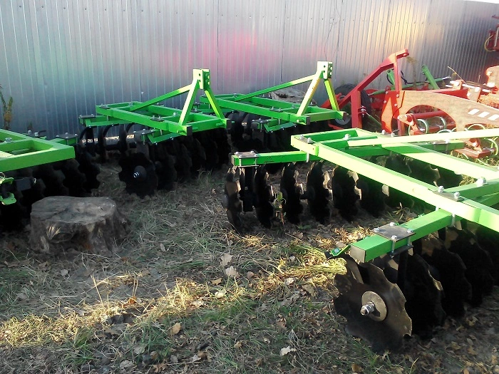 Навесная 2-х секционная дисковая борона ширина захвата 1,5 м серии U363 фирмы Bomet (Польша) предназначена для предпосевной обработки плотных вспаханных на зиму почв (кроме каменистых) с таким содержанием влаги в почве, которое позволило бы произвести их правильную обработку. Дисковая борона предназначена также для разрывания и размельчения дернистых отвалов после пахоты лугов других пастбищных угодий, а также для выполнения лущения стерни непосредственно после срезания растений. Дисковые бороны могут использоваться для резки и заделывания навоза после разбрасывания зеленых удобрений малой и средней величины. Машина может быть использована для перемешивания с землей минеральных удобрений и извести. Работа может выполняться на склонах до 8,5 градусов.