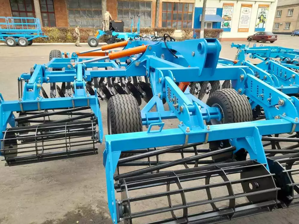 • Необхідна глибина обробітку регулюється встановленням дисків відносно передніх опорних коліс та трубчатих планчатих (на вибір) котків.