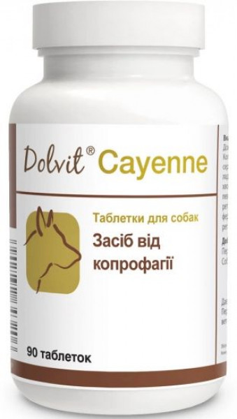 Кормова добавка для собак Dolfos Dolvit Cayenne (Долвит Каєн) - це дієтична добавка для собак при копрофагії. Копрофагия - поїдання собаками фекалій - досить поширене явище серед собак, що призводить до шлунково-кишкових розладів, зараження паразитами, сприяє передачі інфекційних захворювань. Однією з причин розвитку даної патології є нестача певних речовин в організмі. Добавка Долвит Каєн містить ретельно підібрані компоненти: вітаміни, мінерали, травні ферменти, пробіотики та речовини рослинного походження, регулярне вживання яких, допоможе позбутися від цієї проблеми.