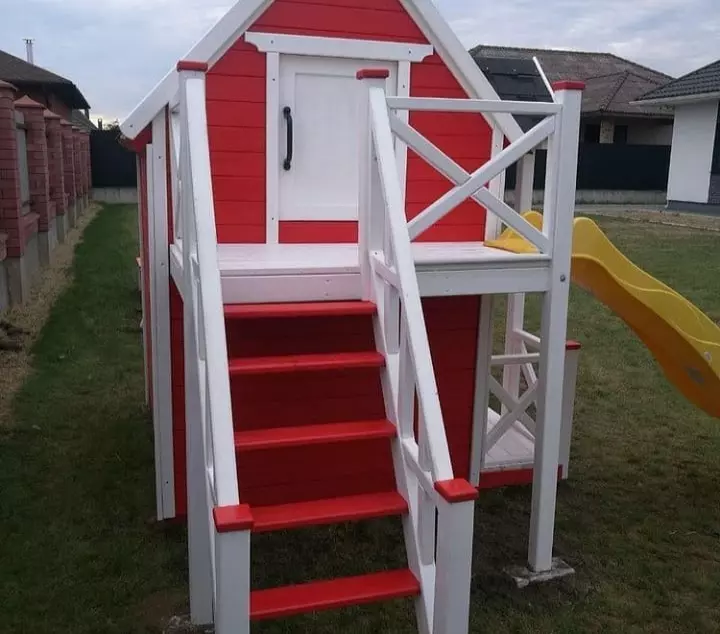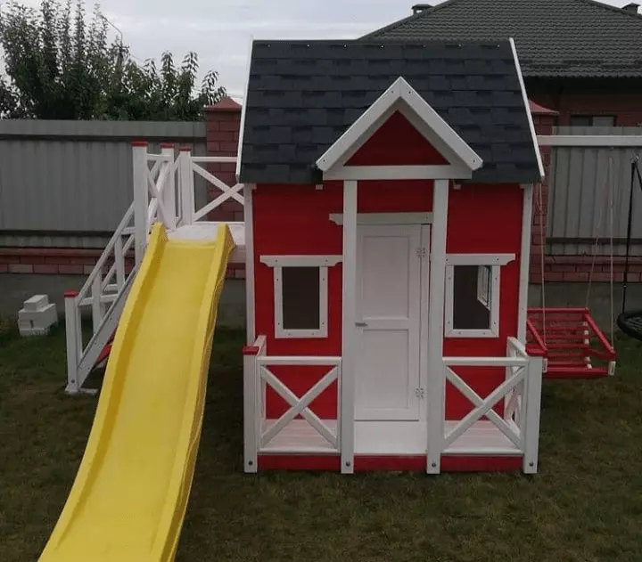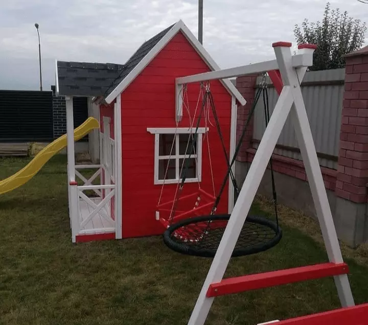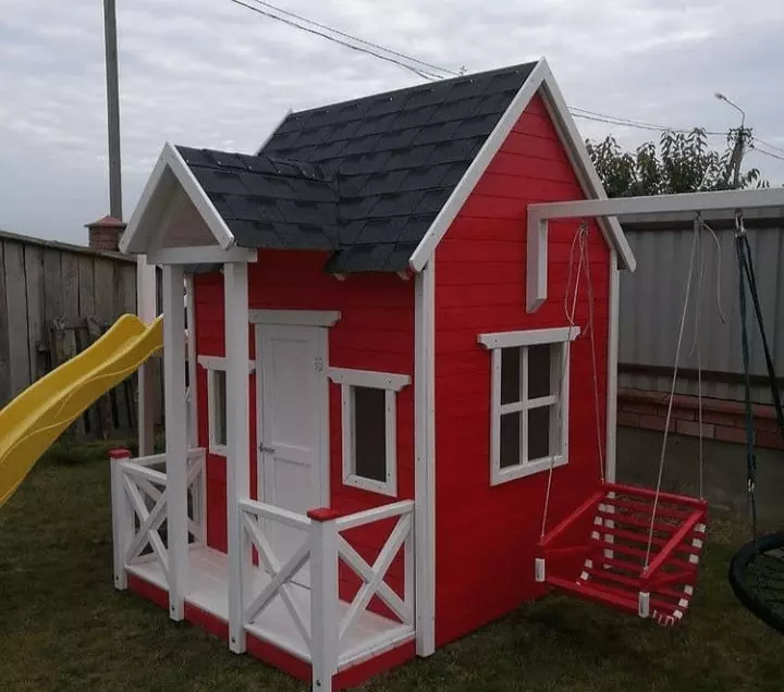 Вибираючи будиночок для дітвори, важливо приділити пильну увагу якості матеріалу. Натуральна деревина у цьому випадку виступає найбільш вдалим рішенням. Імітація бруса всередині створює затишок цього будинку. Для покриття використовують екологічно безпечну фарбу . Весь матеріал просочують биовлагоотталкивающим складам.