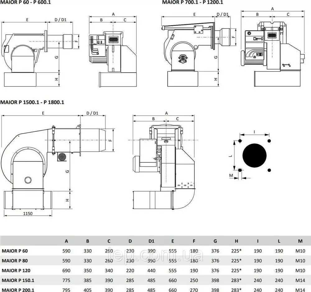 Дизельний двоступеневий пальник MAIOR 120 P AB (830 - 1420 кВт)
