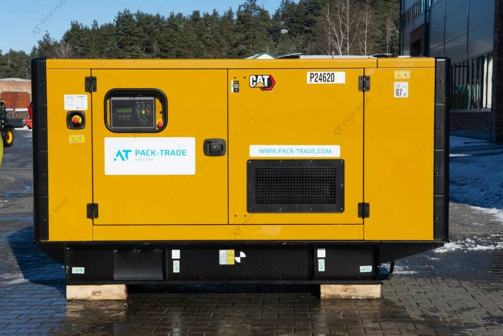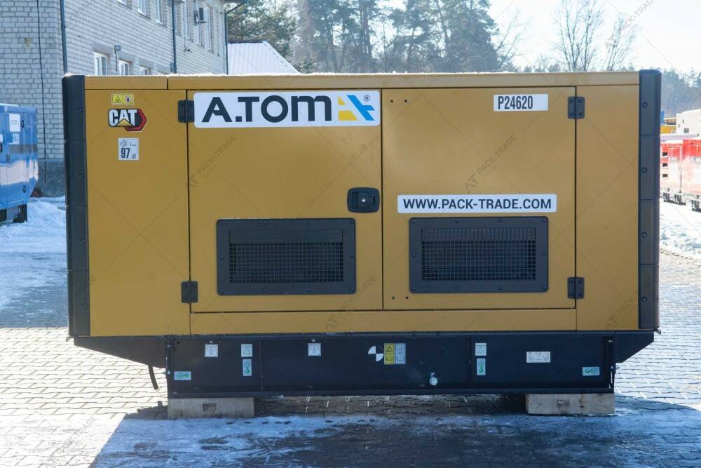 Дизельний генератор CAT DE110E2 88/80 кВт закритого типу. Максимальна потужність 88 кВт. Витрати палива при 100% навантаженні 24.4 л/год. Об'єм паливного баку 166 л.