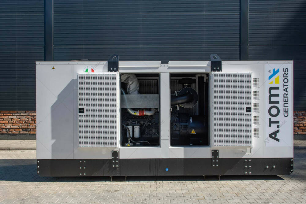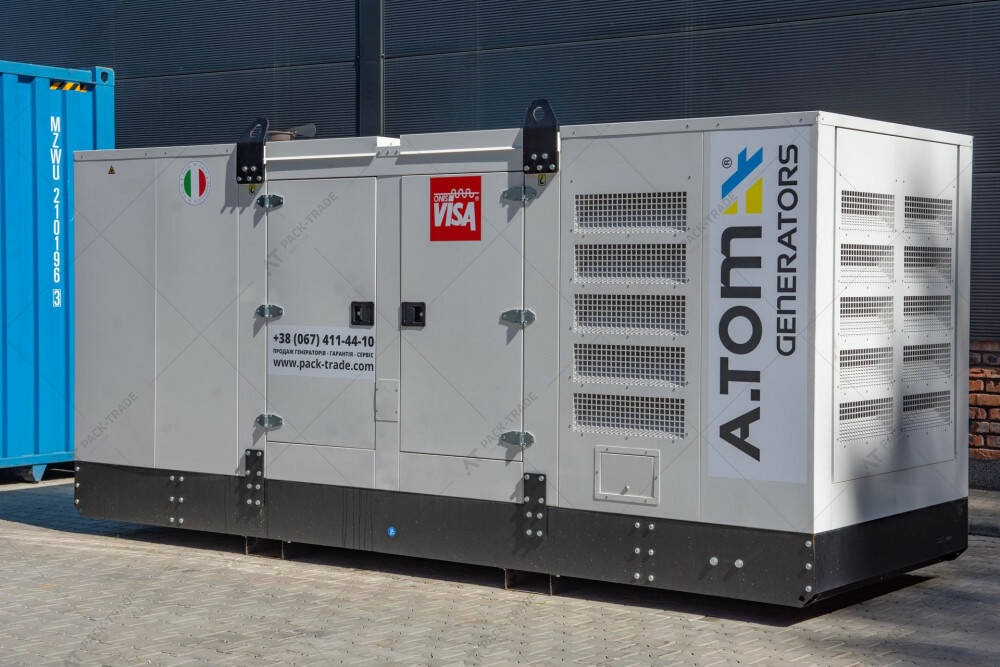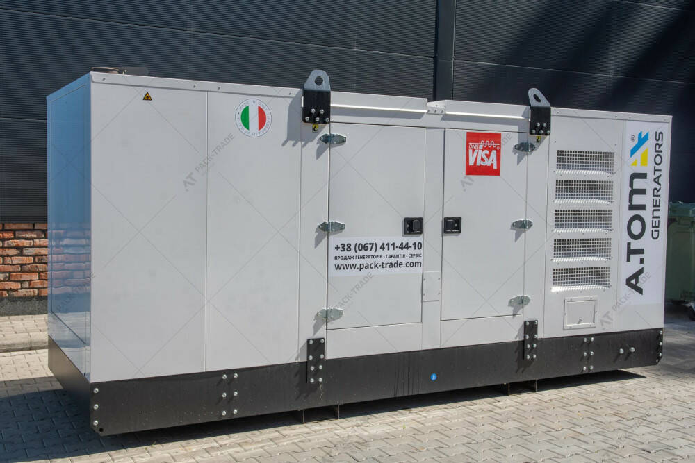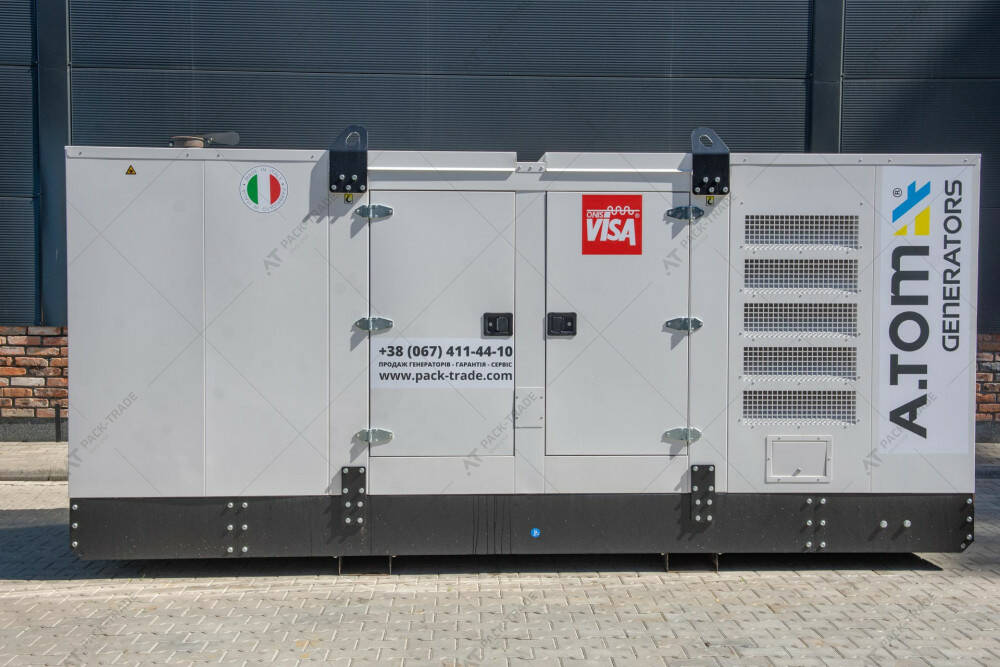 Дизельний генератор COGEM F200S 308/208 кВт. Максимальна потужність – 308 кВт. Витрати палива при 100% навантаженні – 70 л/год. Об'єм паливного бака – 600 л.