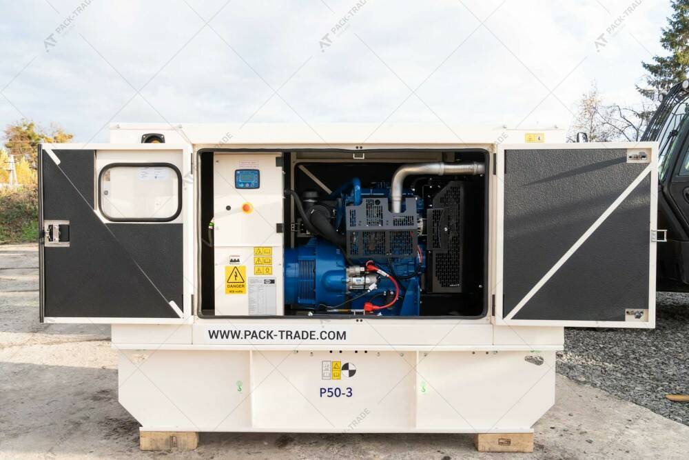 Дизельний генератор FG Wilson P50-3 закритого типу. Потужність 40 кВт. Напруга 110-480 В. Об'єм паливного баку 145 л. Витрати палива при 100% навантаженні 10,5 л.