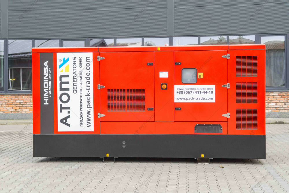 Дизельний генератор HIMOINSA HFW-350 T5 332/288 кВт. Максимальна потужність – 332 кВт. Витрати палива при 100% навантаженні – 88,14 л/год. Об'єм паливного бака – 597 л.