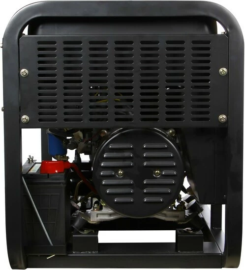Ток на выходе с ровной синусоидой Генерация электричества с неискаженной синусоидальностью тока позволяет подключать приборы с высокими требованиями к качеству питающей сети. Фирменный двигатель D840E с повышенным моторесурсом Усовершенствованный мотор из прочных комплектующих со сниженным числом оборотов и эффективной передачей мощности устойчив к износу и предполагает ежедневную эксплуатацию на длительной основе. Небольшой расход топлива в условиях повышенных нагрузок Модернизированная топливная система способствует экономичному потреблению дизтоплива на выработку каждого кВт/ч и более низкой себестоимости электроэнергии по сравнению с аналогичными моделями. До 11 часов непрерывной работы Конструкторские решения и достижения науки, воплощенные в данной технике, гарантируют безаварийную работу при многочасовой эксплуатации без вынужденных остановок. Вместительный бак не требует частых заправок. Информативный LED дисплей На мультифункциональном экране отображаются основные показатели исходящего электричества для информирования оператора о текущем состоянии генерационного процесса. Синхронный альтернатор с медной обмоткой Фирменный альтернатор оперативно приводит отклонения вольтажа к номинальному значению для электроснабжения чувствительной аппаратуры и электроники. Крепкая металлическая рама Жесткий каркас из стальных труб предотвратит повреждение установленных на ней механизмов и узлов при падении либо сильном ударе. Счетчик моточасов Непрерывный учет проработанного времени необходим для соблюдения периодичности техобслуживания для стабильного функционирования на протяжении многих лет.