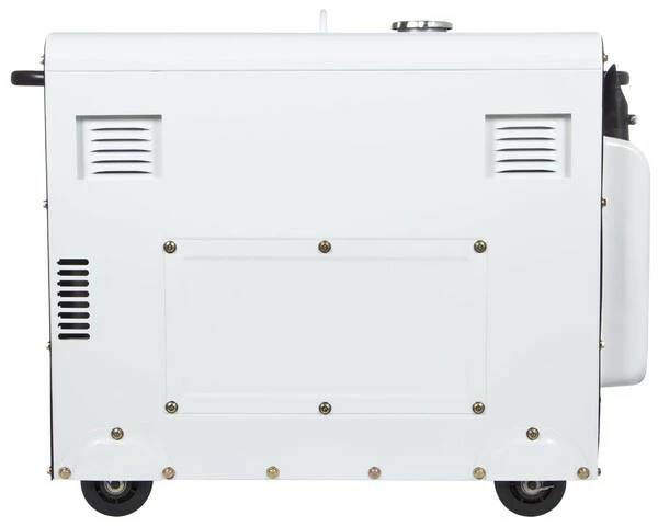 Универсальный генератор 220/380В Функционирование в режимах одно- и трехфазной генерации обеспечило универсальность силовой техники в быту, коммерческой и производственной деятельности. Альтернатор со 100% медной обмоткой Синхронный альтенатор нейтрализует губительные для запитанных приборов скачки напряжения, исключает короткое замыкание. Поддерживает оптимальные характеристики генерируемого электричества, с колебаниями +-1%, которые не могут привести к поломкам. Медь моментально проводит ток без потерь и быстрого нагрева. Производительный двигатель (498 см.куб.) Мощный мотор увеличенного объема способствует выносливости в сложных условиях, возможности подключать энергоемкие устройства. Электронное зажигание позволит включить машину зрелым людям и девушкам. Инжекторная технология впрыска существенно экономит топливо, не снижая продуктивность генерации. 12.5 часов работы на 1 заправленном баке Возможность непрерывного продуцирования электроэнергии в течение полусуток реализована наличием 15-литрового резервуара и модернизацией камеры ДВС, оптимизировавшей потребление дизеля. Стабилизатор напряжения AVR Автоматизированная регулировка основных характеристик тока позволит не переживать за дорогостоящую аппаратуру, которую питает дизель-генератор, дает неизменную частоту без помех. LED дисплей Дисплейный модуль выводит цифровое значение главных показателей для своевременного взаимодействия с машиной и оперативного изменения настроек. Светодиодная подсветка позволит прочесть информацию при любой освещенности. Шумозащитный кожух Металлический всепогодный корпус защищает внутренние механизмы от осадков, повреждений, засорения. Надежная звукоизоляция обеспечит комфорт окружающих.
