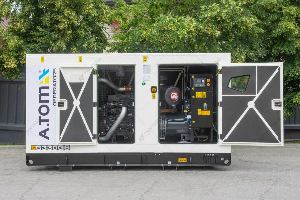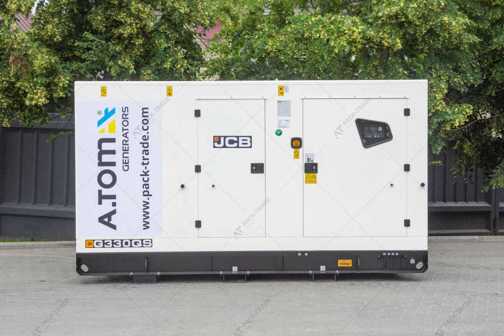 Дизельний генератор JCB G330QS 264 кВт. Максимальна потужність 264 кВт. Витрати палива при 100% навантаженні 63.3 л/год. Об'єм паливного баку 470 л