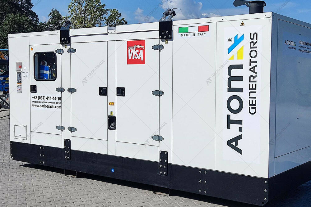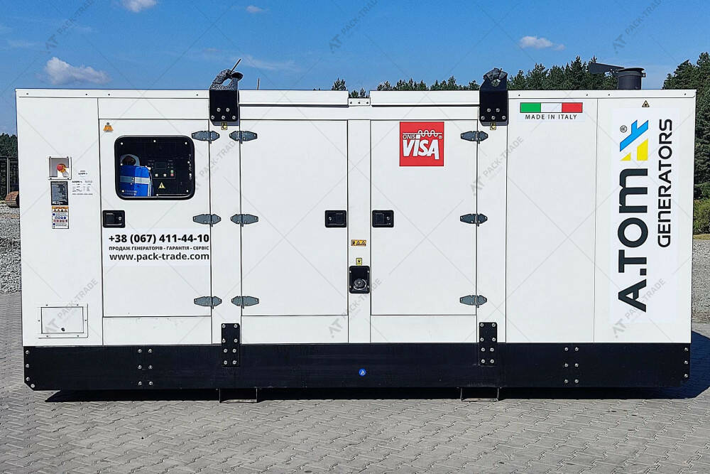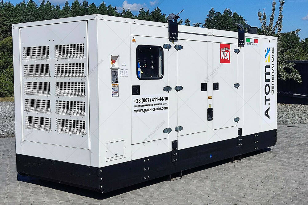 Дизельний генератор VISA F301S 272/248 кВт. Максимальна потужність – 272 кВт. Витрати палива при 100% навантаженні – 66,6 л/год. Об'єм паливного бака – 600 л.