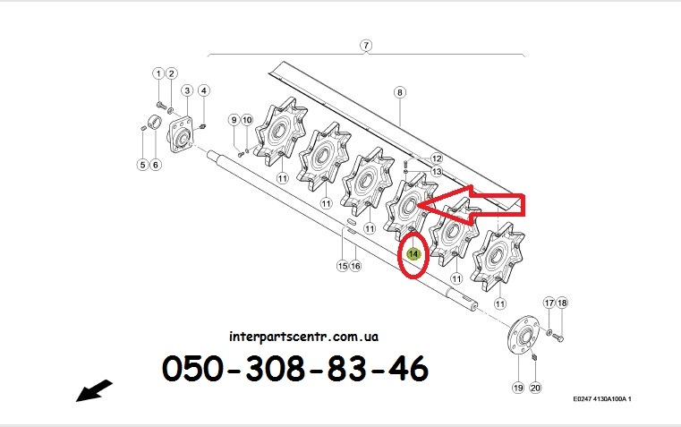 Зірочка відбійного бітера зернозбиральних комбайнів Claas Dominator, Lexion, Tucano, Medion, Mega. Внутр. діаметр - 56 мм, кількість отворів кріплення - 8+2. Каталоговий номер 634977.