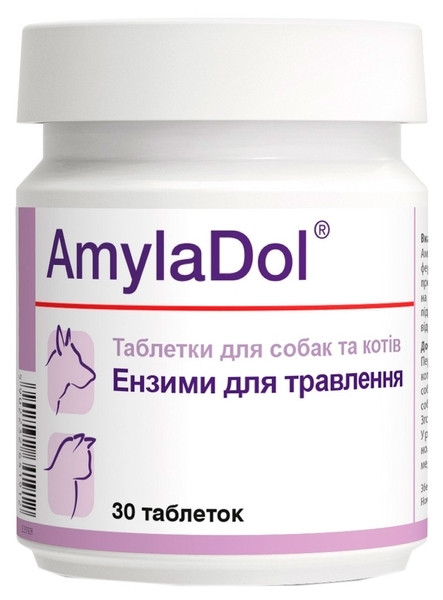 Dolfos AmylaDol - добавка, що містить натуральні травні ферменти, що допомагає переварюванню жирів, вуглеводів і протеїнів, а також усуває розлади травлення у собак і кішок. Засіб рекомендується для тварин з хворобами підшлункової залози або схильних до захворювання панкреатитом. Добавку можна застосовувати при різних порушеннях травлення, при запаленні підшлункової залози, а також при дискомфорті в області живота, виникненні нудоти, відрижки, метеоризмі, діареї тощо.