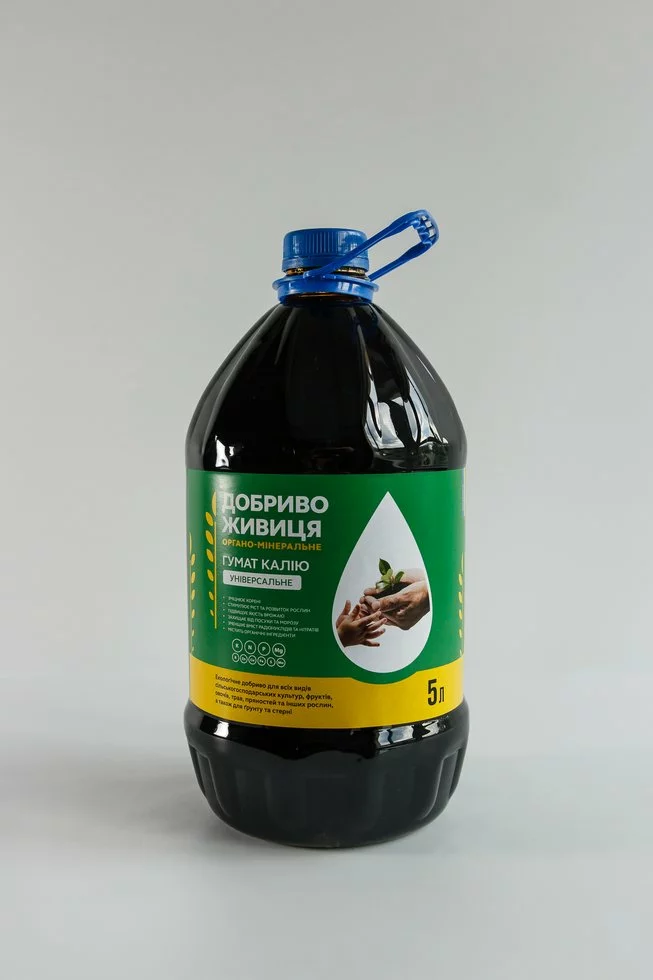 ДОБРИВО ЖИВИЦЯ Гумат Калію – це високоефективне гумінове добриво у вигляді концентрованої суспензії з мікроелементами в хелатній формі, яке володіє властивостями стимулятора та регулятора росту рослин і являється антидепресантом практично для усіх сільськогосподарських культур.