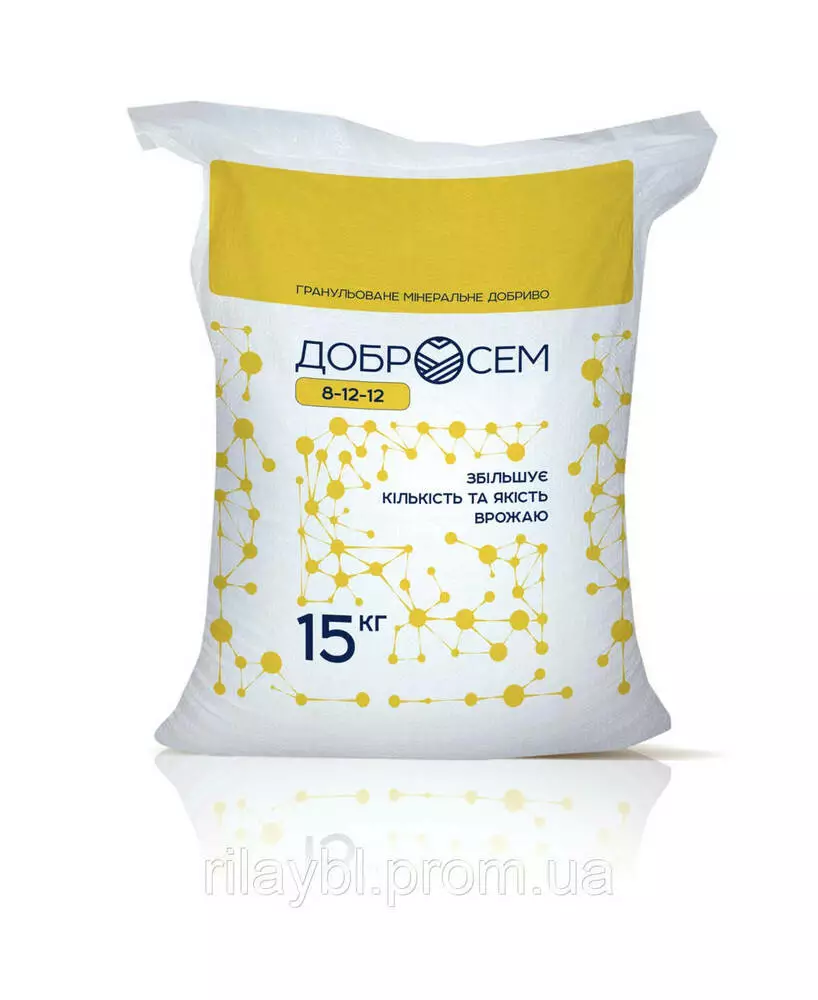 Добросем є універсальним комплексним мінеральним добривом, яке розроблено для підживлення зернових, колосових, технічних та зернобобових культур. Це гранульоване добриво поступово вивільняється в грунті протягом сезону вегетації, сприяючи поступовому підживленню рослин та підтримку під час всіх фаз.