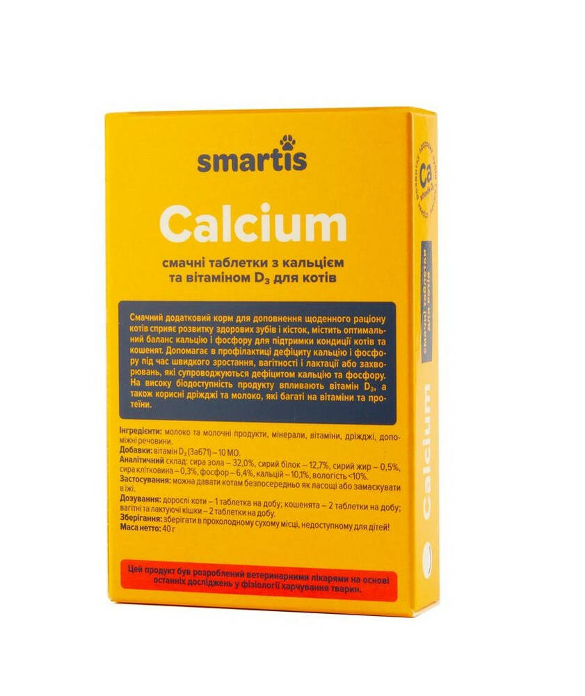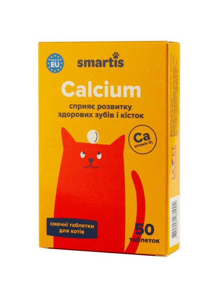 Додатковий корм для кішок Smartis Calcium з кальцієм та вітаміном D3 (50 таблеток)