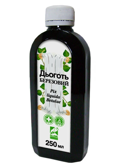 Дьоготь березовий містить фенол, ксилол, толуол, гваякол, смоли і інші речовини. Дьоготь отримують шляхом перегонки кори і деревини берези.