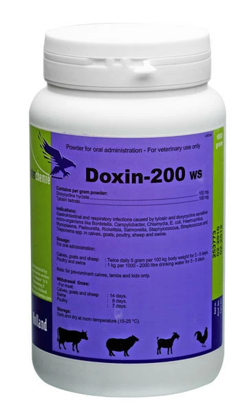 Доксициклін являє собою антибіотик, що належить до групи тетрациклінів бактеріостатичної дії проти таких грампозитивних і грамнегативних мікроорганізмів, як Bordetella, Campylobacter, E.Coli, Haemophilus, Pasteurella, Salmonella, Staphylococcus і Streptococcus spp. Доксициклін діє також на Chlamydia, Mycoplasma і Ricettsia spp. Перешкоджає синтезу протеїнів бактерії. Доксициклін добре проникає в легені, тому його використовують для лікування респіраторних інфекцій.