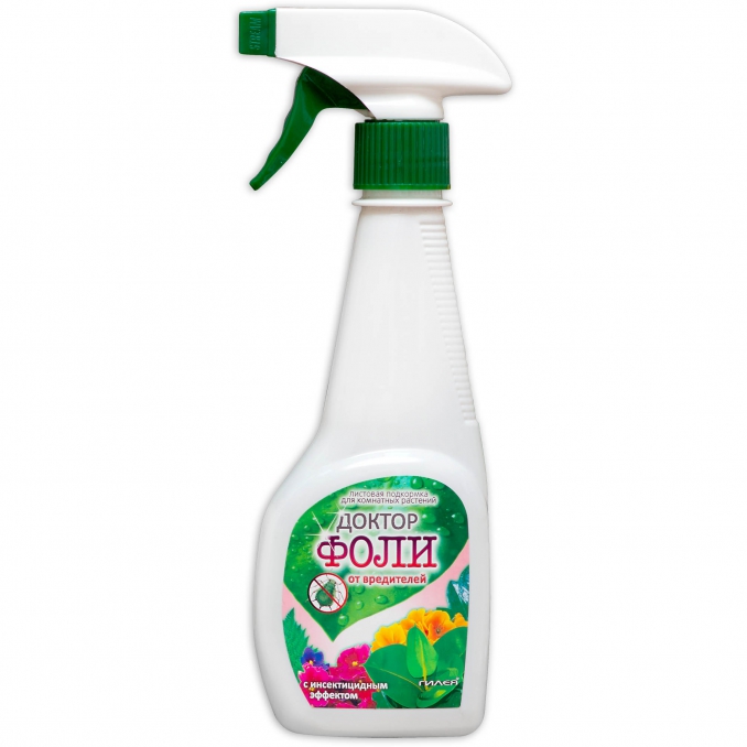 Доктор Фолі від шкідників – лікувально-профілактичний засіб розширеного спектру дії з інсекто-акарицидними властивостями для позакореневого використання. Застосовують для всіх видів кімнатних рослин.