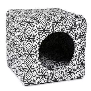 Домик для котов и собак небольших пород «Фантазия» благодаря универсальному дизайну и оригинальному черно-белому рисунку ткани отлично впишется в любой интерьер. Он очень уютный и мягкий благодаря поролоновому наполнителю, а также бюджетный и практичный.