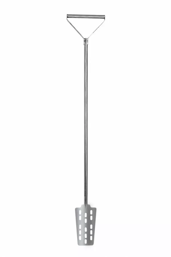 До бортів ємності легко кріпиться кошик для солоду, після чого чисте сусло зливається в казан, а дробина залишається в кошику. Довга лопатка допомагає перемішувати дробину навіть на дні казана.