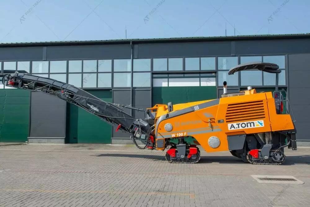 Дорожня фреза б/в Wirtgen W100F 2010 р/в, з напрацюванням 6279 м/г.Потужність двигуна – 209 кВт. Вага – 19800 кг. Ширина фрезерування – 1 м. Глибина фрезерування – 0,32 м. Гідравлічно складаний передній конвеєр.