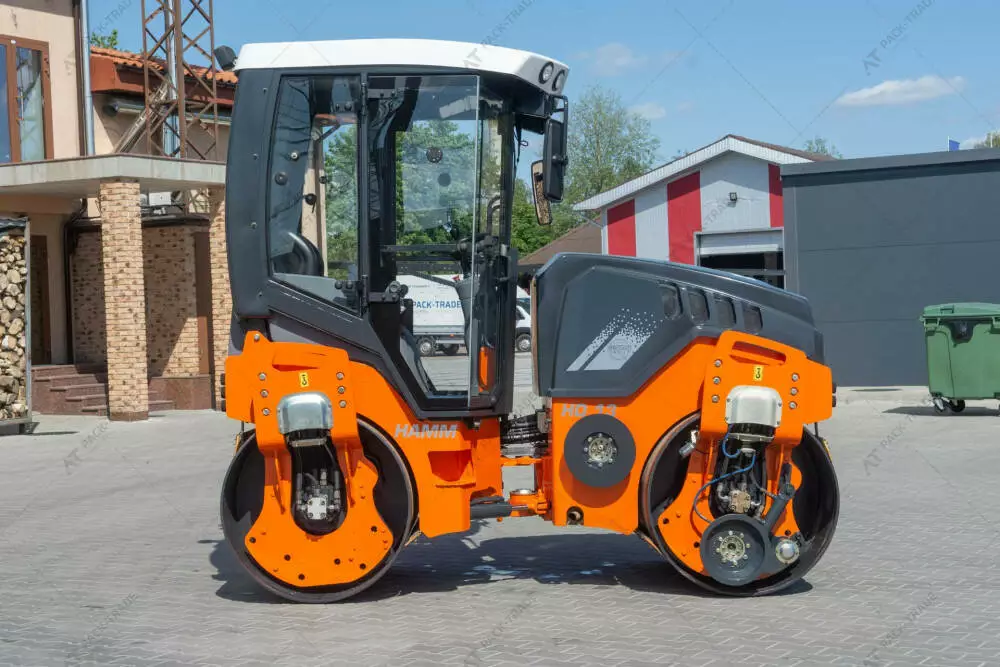 Дорожній каток б/в Hamm HD13VV, 2013 р/в, з напрацюванням 4208 м/год. Потужність двигуна – 34,6 кВт. Вага – 4920 кг. Робоча ширина 1,3 м. Кабіна з обігрівачем, робоче освітлення, функція притискання та різання країв.
