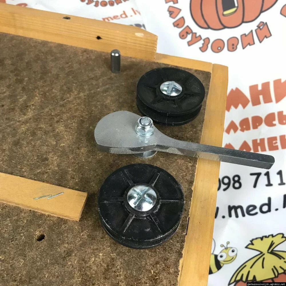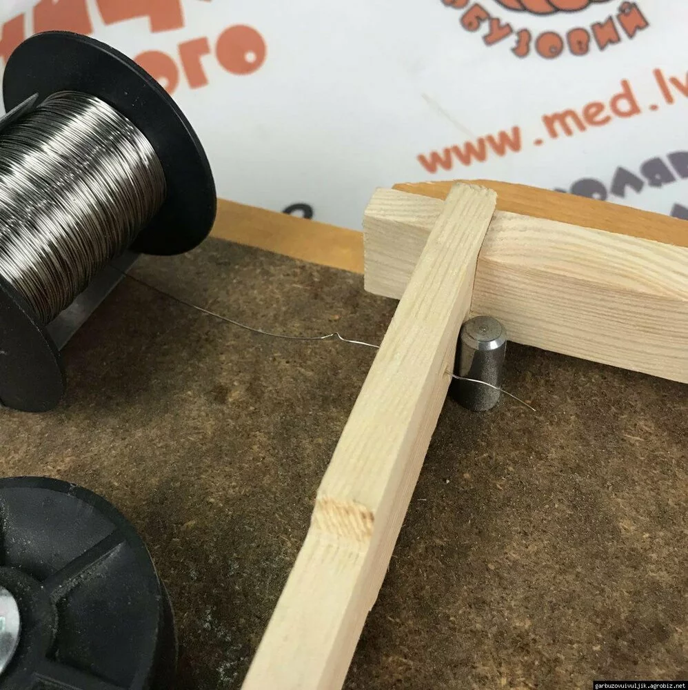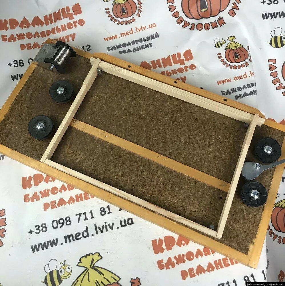 Дошка для натяжки дроту на рамки - нескладний пристрій, який застосовують на будь-яких пасіках. Призначається для забезпечення дротом рамок для бджіл, незалежно від виду. Універсальна конструкція, за допомогою якої можна натягувати дріт на рамки типу «Дадан» (435*300) і «Рута» (435*230). Пристрій має можливість перестановки його елементів під ці рамки. Кілька рядів отворів робляться спеціальними дироколом або за допомогою свердлильних верстатів. Дріт повинен бути по ним добре натягнутим. При цьому він повинен лягати в середині планок. Способів натягування існує багато. Прекрасні результати дає натягування дроту горизонтальним способом. Після оснащення рамки дротом, на ній, за допомогою ручних засобів або електронавощувача, навощують вощину. Простота технології та експлуатації дошки для натяжки дроту - гарантія того, що бджолярі можуть еффективно і без проблем натягнути дріт на рамку.