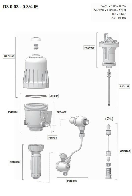Дозатор для рідини D3WL3000IE 0,03 - 0,3 %