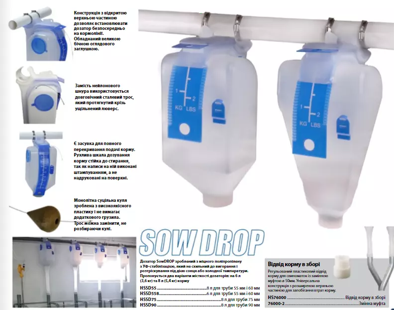 Дозатор корму SOW DROP для труби 55 і 60 мм, 8 литров