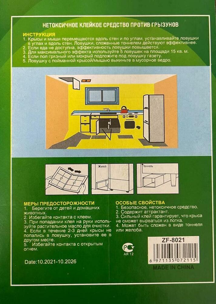 Запобіжні заходи. При зборі пасток з спійманими гризунами, використовувати гумові рукавички.