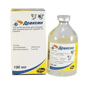 Драксин – антибактеріальний лікарський засіб у формі розчину для ін'єкцій, що містить у 1 мл в якості діючої речовини 100 мг тулатромицина, а в якості допоміжних речовин монотиоглицерол і воду. Лікарський засіб за зовнішнім виглядом представляє прозорий безбарвний розчин.