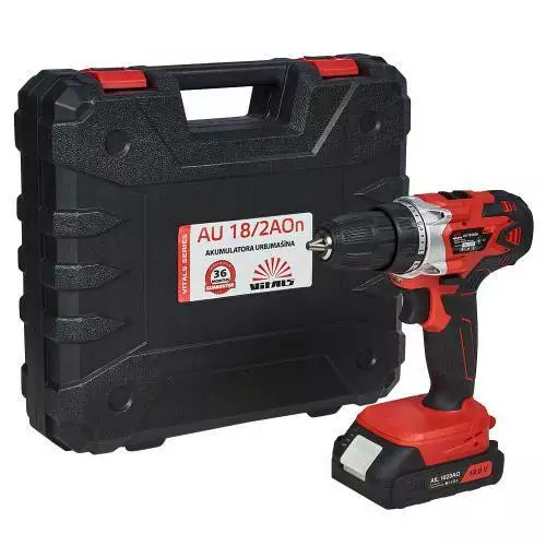 Дриль-шурупокрут акумуляторний Vitals AU 18/2AOn має новий, яскравий дизайн. У комплекті поставки є 2 батареї ємністю 2000 мАг, а також зарядний пристрій. Дриль-шурупокрут акумуляторний Vitals AU 18/2AOn поставляється в міцному пластиковому кейсі для зручності транспортування та зберігання. Максимальний діаметр хвостовика оснащення, який можна зафіксувати у швидкозатискному патроні дорівнює 10 мм. Модель має 2 швидкості обертання шпинделя. Не першої швидкості досягається максимальний момент, що крутить, в 28 Нм, для закручування кріпильних виробів. На другій швидкості досягається високі обороти 1400 об./хв для свердління отворів.