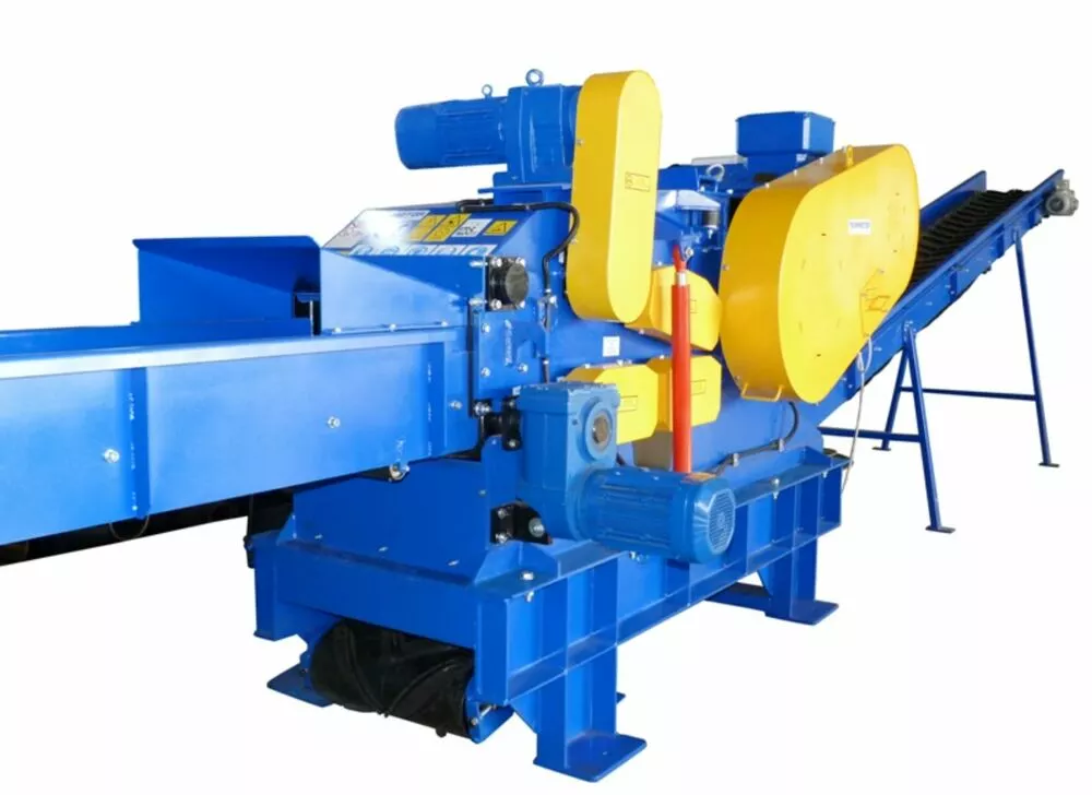 Ріжуча система обладнання складається з барабана з 2, 3 ножами або додатково з 4 ножами. Для отримання тріски точного розміру використовуються сита. Точний розмір трісок отримують завдяки налаштуванню відповідної кількості ножів на барабані і діаметру отворів сита. Отриману сировину використовують для виготовлення паливних пелет чи гранул, для компосту.