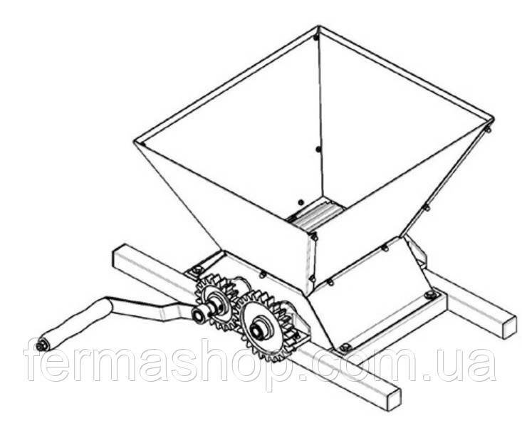Дробилка предназначена для раздавливания винограда, а также клубники и других ягод, мягких фруктов и т.д. в личных подсобных хозяйствах для получения мезги.