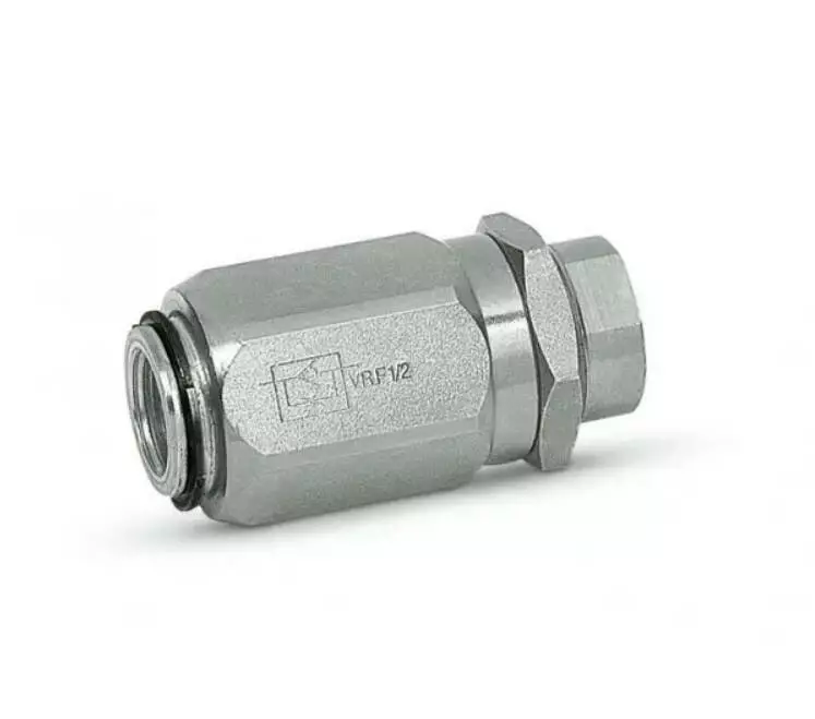 Корпус і втулка дроселя — бочки зі зворотним клапаном VRF 1/4" виготовлені з оцинкованої сталі, а внутрішні компоненти з термічно загартованої та шліфованої сталі. Ущільнення — стандарт BUNA N за допомогою муфти, унаслідок чого відбувається незначна витік у разі закритого клапана. Максимальна пропускна здатність — 20 л/хв Максимальний тиск — 300 барів.