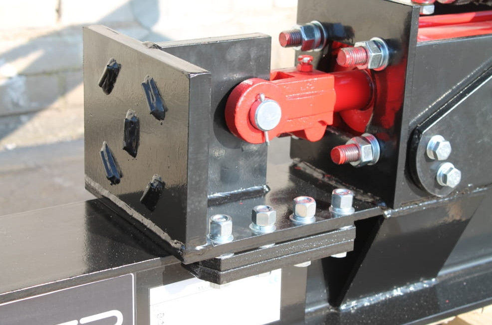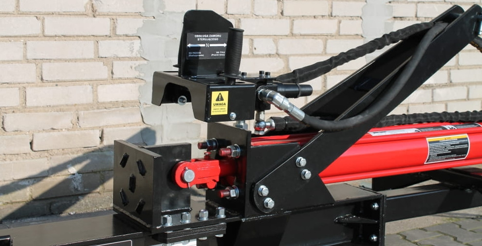 Привід передається від гідронасосу трактора. Поршень управляється важелем на столі, що розколює.