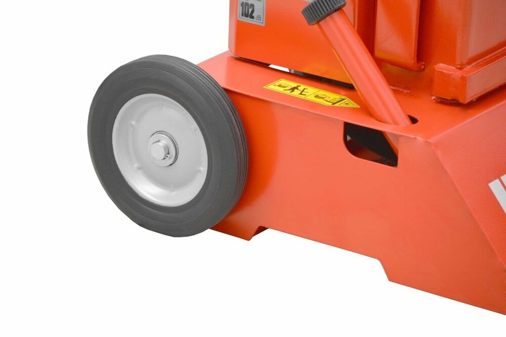 Дровокол оснащений колесами для полегшення транспортування важкого інструменту.