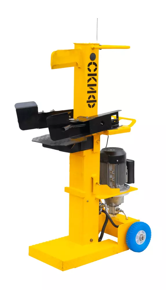 Дровокол гидравлический Скиф ДГ10/220. Подходит практически для выполнения любой работы по колке дров. Двуручное управление. Дровокол удобно транспортировать и использовать (оснащен транспортировочными колесами). Вертикальное рабочее положение. Эффективный стационарный дровокол Скиф ДГ10/220 предназначен для расщепления (раскола) поленьев при заготовке дров. Оснащён гидравлической системой подачи с электрическим приводом. Особенности конструкции этого прибора обеспечивают высокий уровень безопасности и эффективное выполнение работ. Дровокол оснащен электродвигателем мощностью 3.0 кВт. Для запуска устройства необходимо подключение к электрической сети с напряжением 220 В. Дровокол Скиф ДГ 10/220 имеет возможность настройки раскола поленьев разного размера: 56 см, 81.5 см, 107 см., а его диаметр должен быть от 15 до 50 см. Не смотря на достаточно большой вес (162 кг), устройство легко транспортируется к месту работы, или может быть установлено стационарно. Широкое основание, значительный вес обеспечивают отличную устойчивость. Скиф - бюджетный производитель садовой техники. Страна - родина производителя - Украина. Основная часть продукции собирается в Украине.