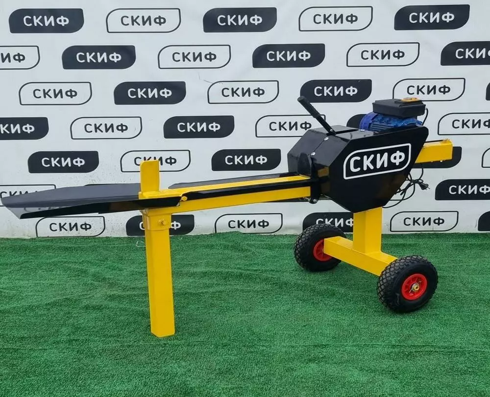 Электрическая модель на базе рельсовой конструкции в сочетании с кинетическим механизмом способна развивать полезное усилия на сдавливание до 8 тонн. Этого достаточно, чтобы справиться с любыми породами дерева. Дровокол Реечный Скиф рассчитан на работу и с сухими, сучковатыми поленьями.