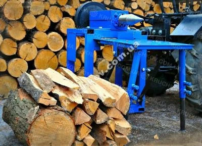 Винтовой дровокол с приводом от мототрактора, предназначен для раскалывания поленьев во время заготовки дров.