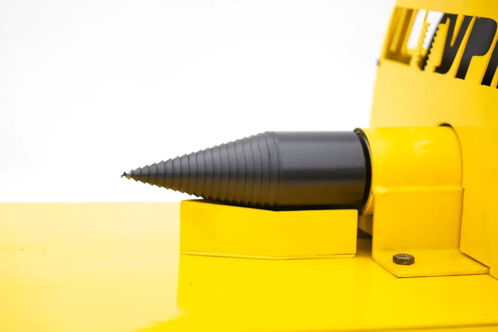 Подача поленьев происходит очень просто. Для этого достаточно положить их на небольшую станину. После того как чурбан подводится к конусу, все происходит автоматически. На него нанесена структура, которая способствует проникновению модуля внутрь дерева, чем происходит расслоение на части. Никаких разлетающихся щепок или слетающих топорищ. Все безопасно и с задачей сможет справиться даже ребенок. Мотор также защищен от механических повреждений специальными усиливающими дугами.